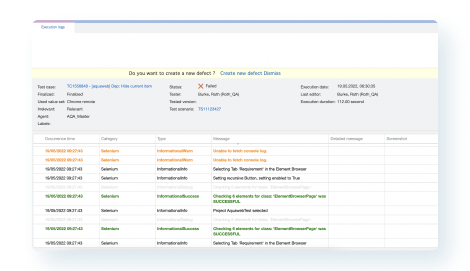 Get test execution information