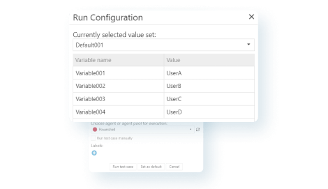 The PowerShell integration can utilise test case variables stored in aqua